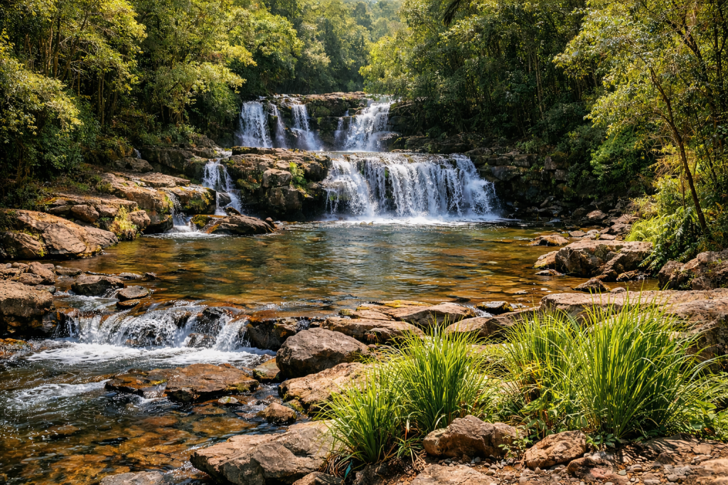 - Por que é perfeita para iniciantes: A trilha é ampla e com pouca inclinação, ideal para admirar a vegetação única do cerrado. O destino é o majestoso Rio Preto, com suas águas escuras e uma sequência de piscinas naturais e corredeiras suaves perfeitas para relaxar. É a porta de entrada perfeita para o universo mágico da Chapada.